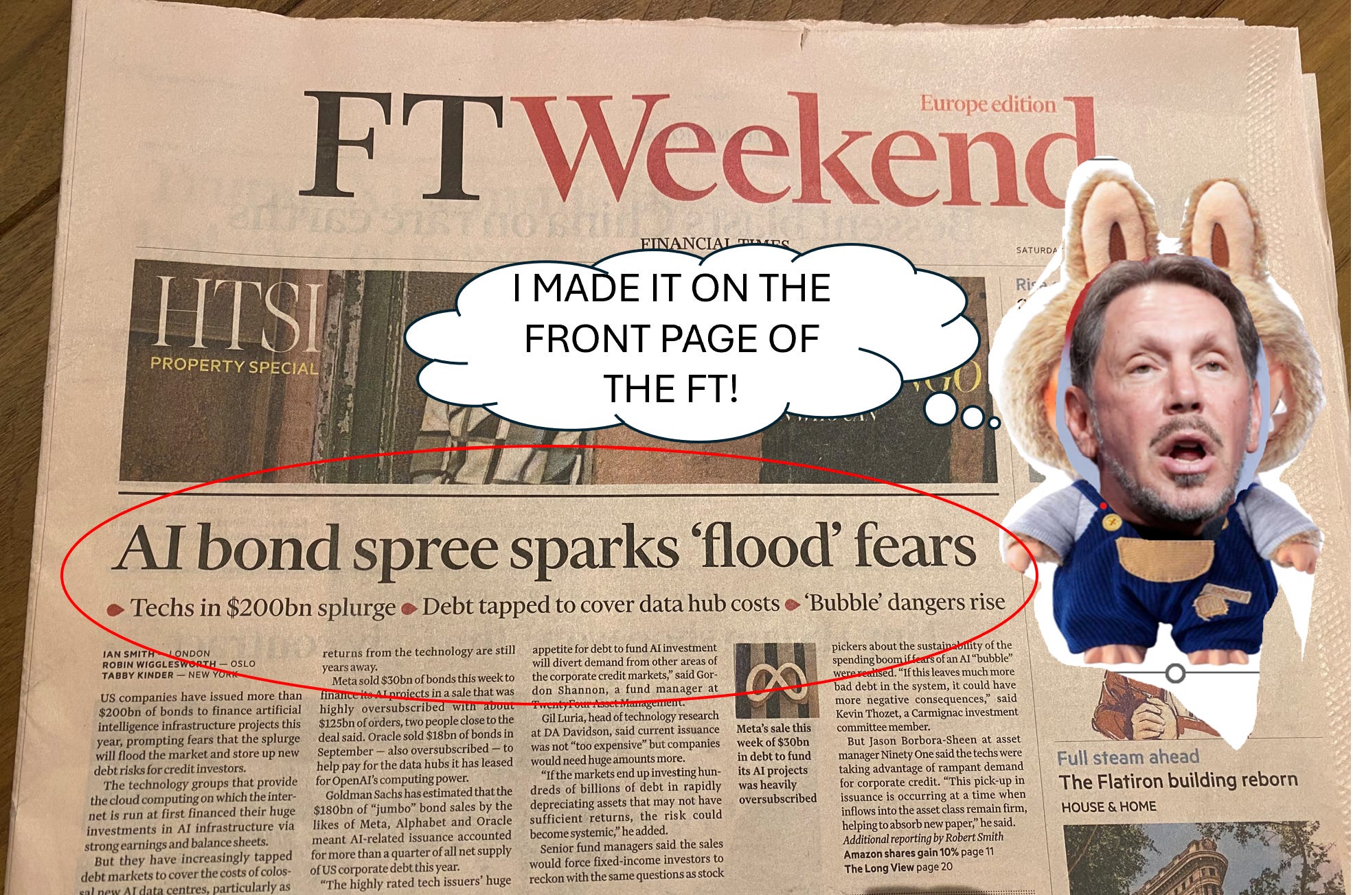 The front page of the Weekend FT shows that such concern is becoming mainstream. They forgot to add “Labubu Larry” on the cover, but I’m also happy to oblige!