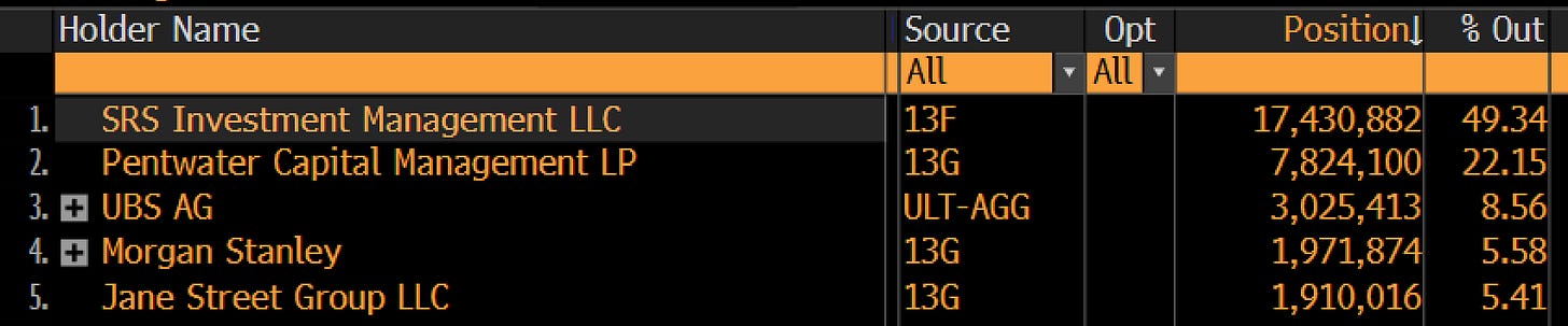This would put the “free float” at only 10.1m shares, assuming that neither SRS and Pentwater are sellers (a BIG assumption).