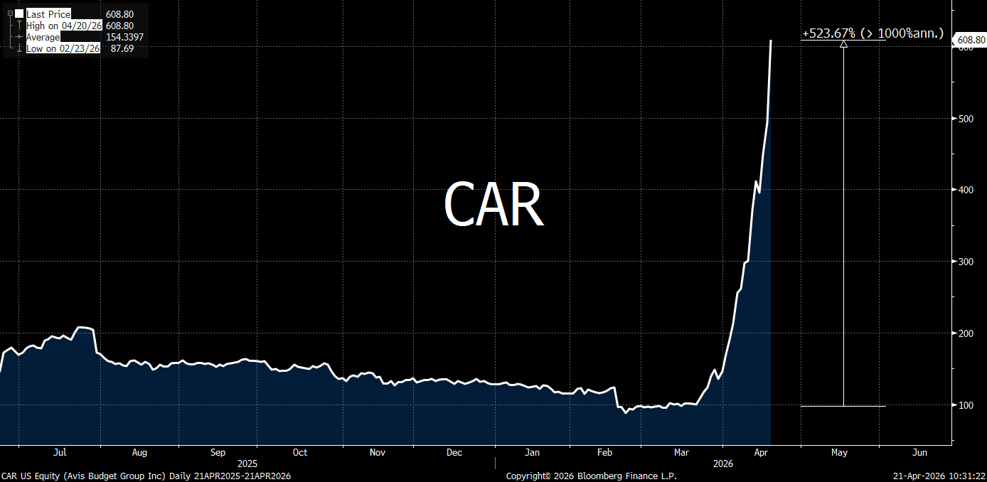 But it’s still weird to see a car rental company rocket up by +500% in a month, during the biggest energy crisis since the last one, outperforming all my space ponzis that actually went to the moon!