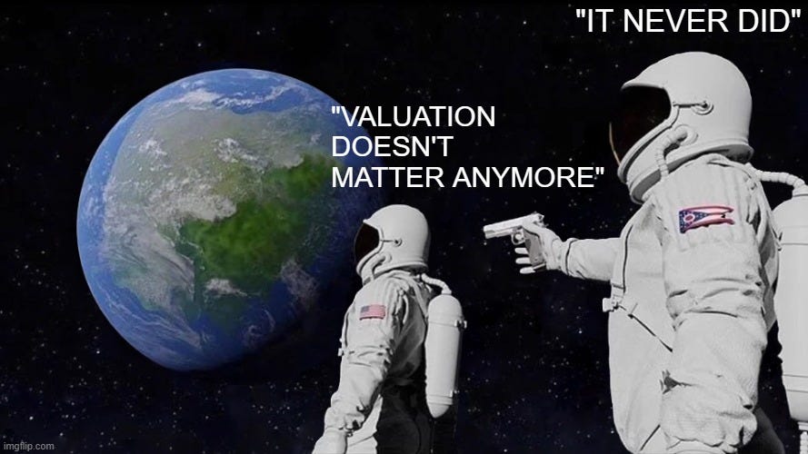 After all, Valuation doesn’t matter anymore … it hasn’t since 2020, or 0 A.C. (“0 Anno Covidi”).