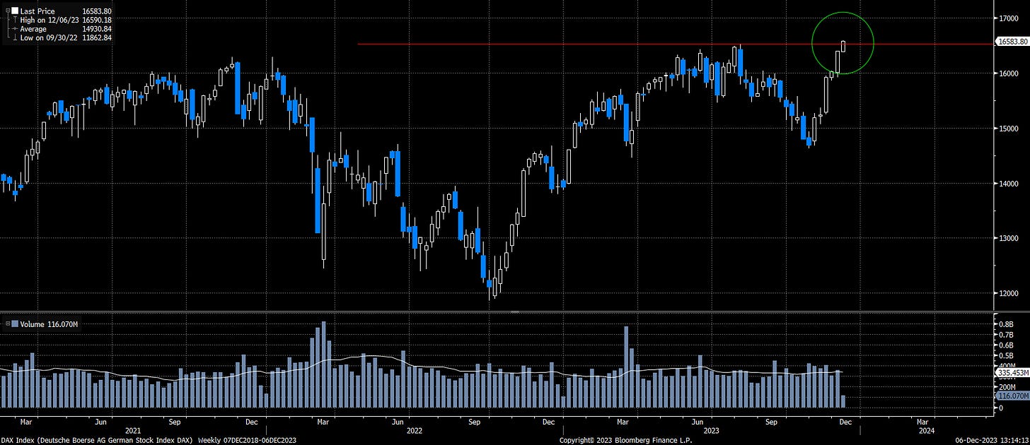 While everyone is focused on US Indices which are chopping and trying to break out, I’m noting that the DAX has already broken out to a new All-Time-High !
