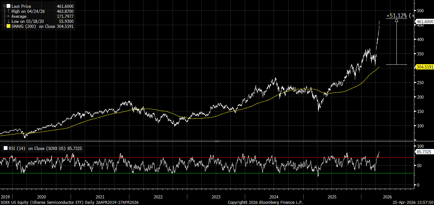 …which is why the Semiconductors Index (SOX) enjoyed a +50% rally in a month and is now the most overbought it’s ever been (source: BofA)!