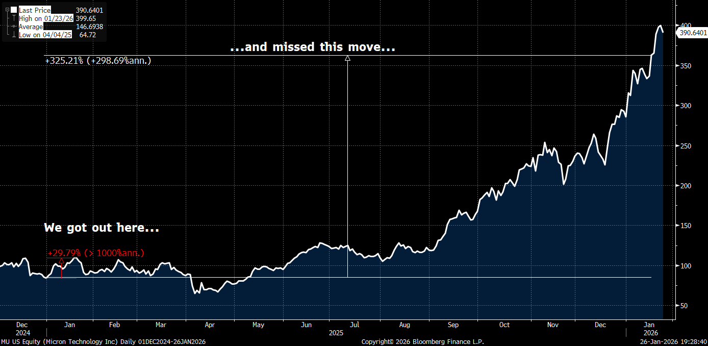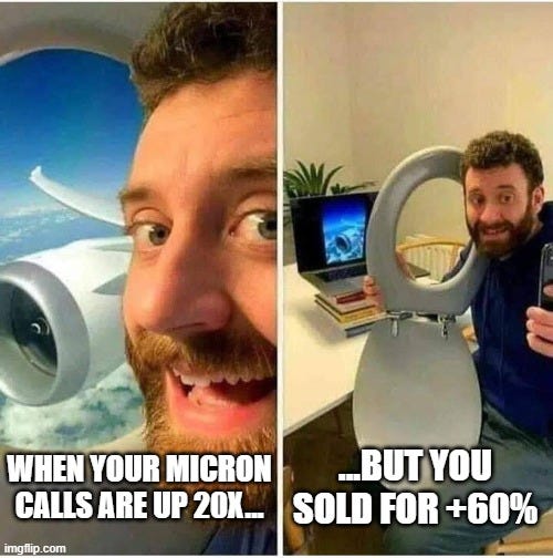 On the Jan 16th 2026 option expiry, Micron closed at $363, our calls went up nearly 20x and we would be writing this piece from a beach in Maldives…