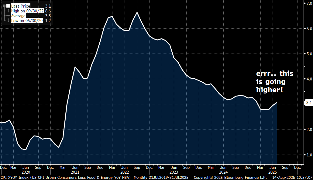 Errr, I pulled up a chart of the CPI-ex-stuff-the-Plebes-need , and it’s still above 3%. Even worse, that line looks like it wants to go higher. Inflation re-accelerating would really put a spanner in the works …unless we make up the numbers going forward…. just like the previous guys 🤭