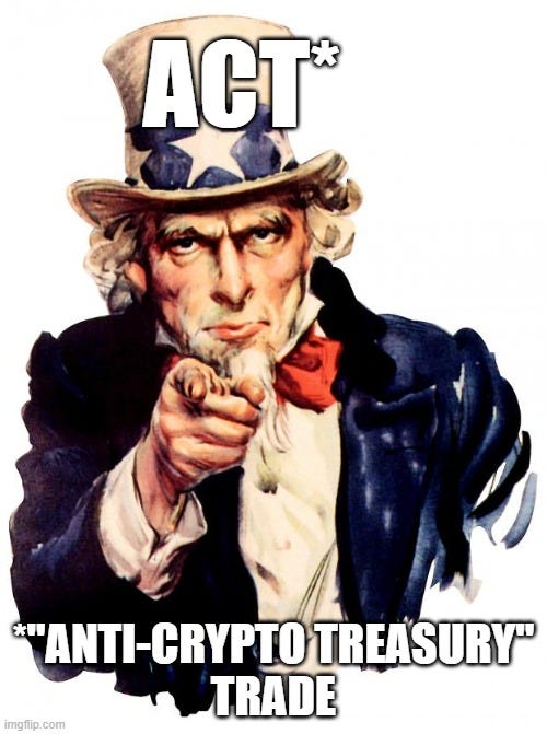 However, amidst this mental exercise, I arrived at an “Anti-Crypto Treasury” trade (acronym: ACT™️).